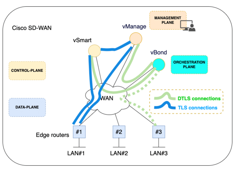 3. Data Plane: Handled by WAN Edge devices, responsible for traffic forwarding.